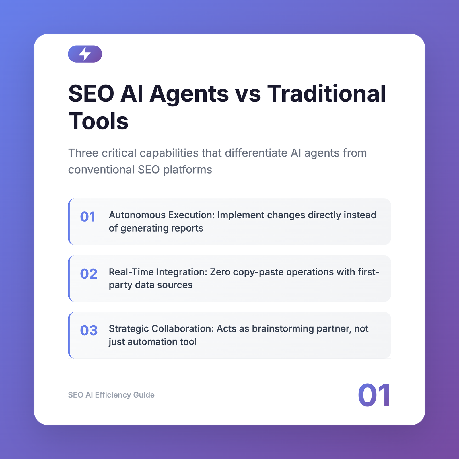 SEO AI Agents operate differently. They combine three critical capabilities: